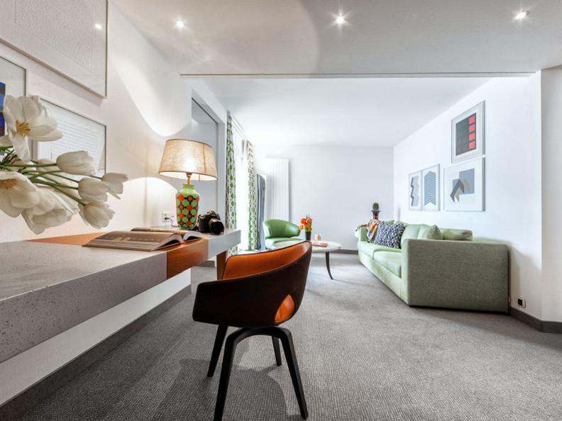 Ninety-five rooms and suites with plenty of natural light in the distinctive and colourful décor of Ticino interior designer Carlo Rampazzi offer a sense of well-being with Mediterranean flair.