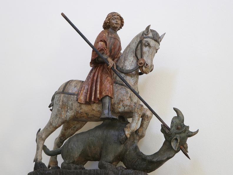Molto interessante la scultura in legno della seconda metà del Quattrocento che rappresenta San Giorgio che uccide il drago e che si trovava un tempo sulla facciata.