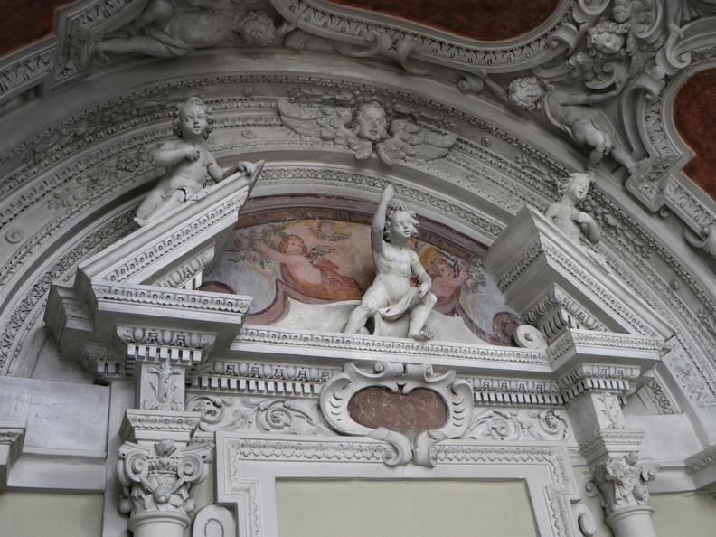Gli stucchi della nuova cappella maggiore, di gusto cinquecentesco, sono forse del pittore gambarognese Antonio Balestra.