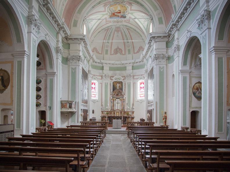 Nell'interno, numerose tele alle pareti. Gli altari e il coro sono riccamente decorati in stucchi policromi alcuni dei quali di Carlo Terugia (1654). L'altare maggiore è in legno dorato e dipinto a finto marmo (XVIII secolo). La lampada di ottone traforato davanti all'altare è stata donata, così dice la tradizione, da S. Carlo Borromeo. Interessanti, in sacrestia, tre armadi in noce con colonne a tortiglione del XVII secolo.