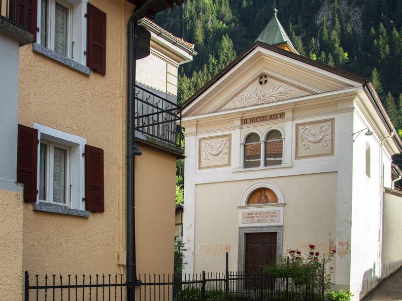 Costruzione attestata dal 17. Sec., modificata nel 1838 e nel 1862, voltata a botte e conclusa da un coro semicircolare. L’altare contiene una statua del santo patrono, inizio 16. Sec. Decorazione pittorica databile alla fine 19.-inizio 20. Sec.”Bianconi e Janner nel loro libro ("L’arte in Leventina, Bellinzona: Istituto Editoriale Ticinese, 1939, p. 89) pensano che l’autore della statua di San Nicolao sia lo stesso scultore che ha operato pure a Quinto, Deggio, Ronco e Altanca.