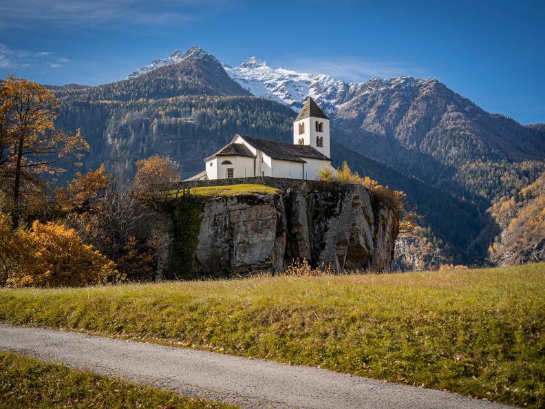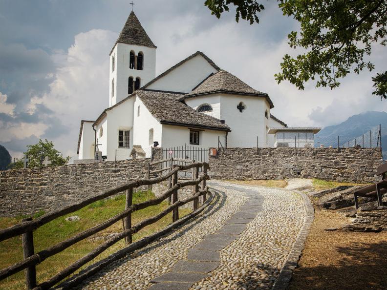 Isolata su uno sperone di roccia, stagliata contro il cielo quando la si guarda dal fondovalle, la chiesetta di S. Martino a Calonico è conosciuta soprattutto per la pittoresca posizione in cui è situata. Il massiccio campanile testimonia l'origine medioevale della chiesa e risale probabilmente al XII secolo.