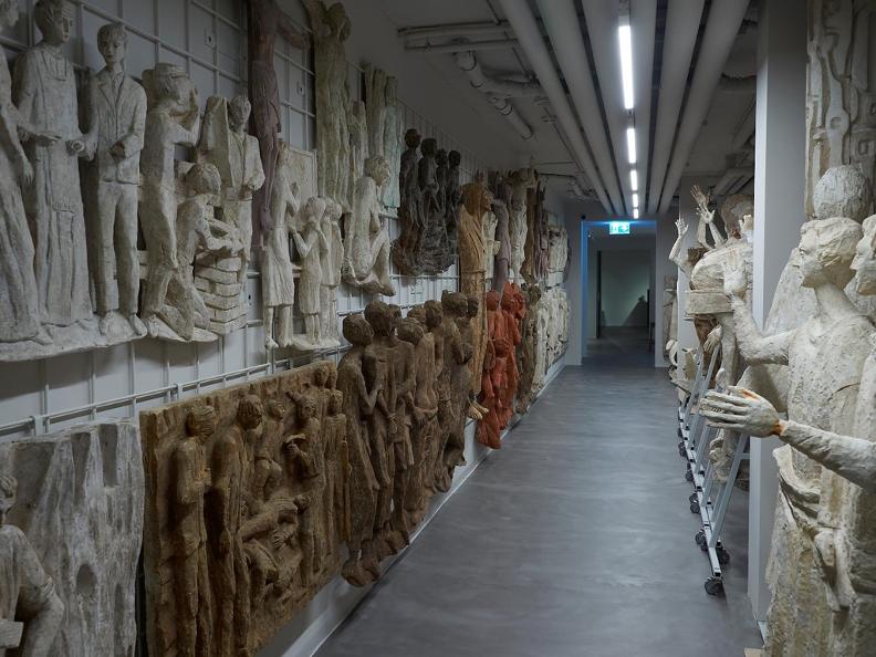 Al piano inferiore sono individuate alcune “isole” - aggruppamenti di opere - che meglio inquadrano aspetti del suo lavoro e che si concentrano sui ritratti, sulla evoluzione degli “organismi biomorfi” e sulla realizzazione di opere di grandi dimensioni a destinazione sia pubblica che privata. Questo viaggio si conclude con un ulteriore passaggio nell’ambito della scultura religiosa che, mediante rilievi a sbalzo su rame e rilievi in gesso, introduce allo spazio dedicato all’ampio intervento compiuto tra 1966 e 1992 per la chiesa del Buon Pastore a Vienna, l’opera più significativa della sua produzione sacra.