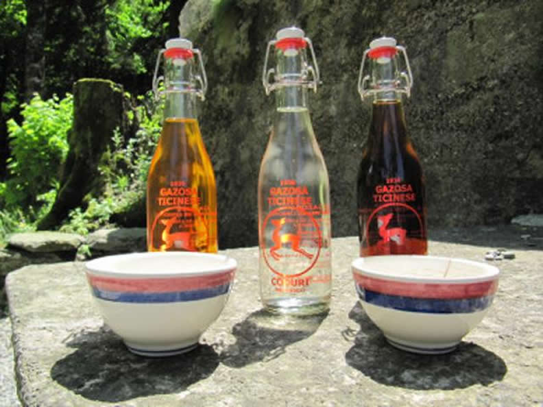 La Gazzosa è la bevanda simbolo del Ticino: dolce, fruttata e leggermente gassata, conquista da generazioni con il suo gusto semplice e autentico. Nata come “champagne dei poveri”, veniva servita nelle feste grazie alle sue bollicine. In origine si vendeva in bottiglie di vetro verde con tappo in sughero. Più tardi si diffuse una bottiglia speciale con una biglia di vetro nel collo: la pressione del gas la spingeva verso l’alto, sigillando la bevanda.