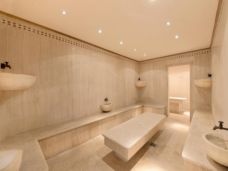 Ricco di mosaici e marmi, a ricordo delle antiche terme romane, offre al cliente un' indimenticabile esperienza: piscina con nuoto controcorrente, "getto d’acqua" utile soprattutto per la cura dei dolori cervicali, sauna, hammam, bagno turco, solarium e jacuzzi.