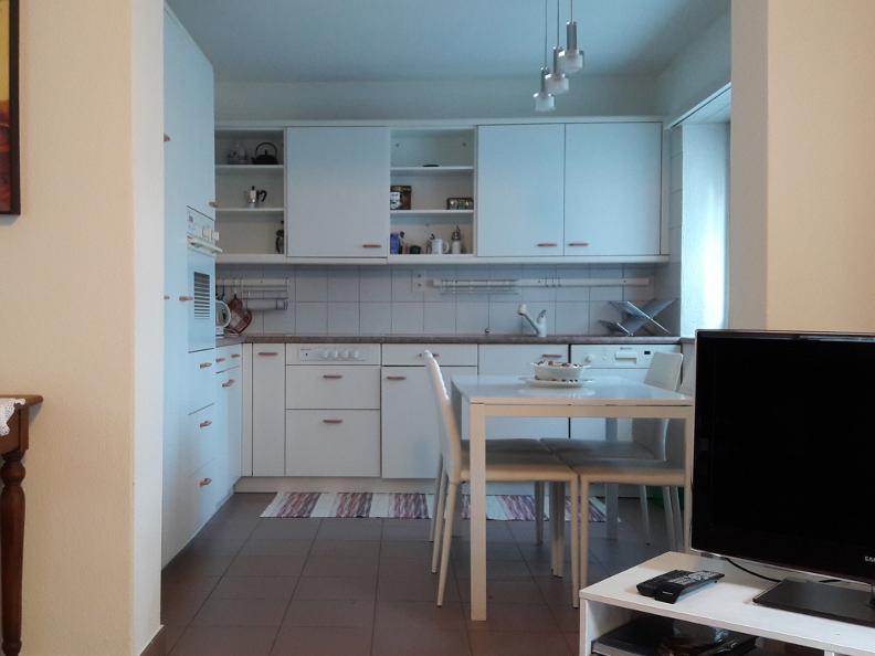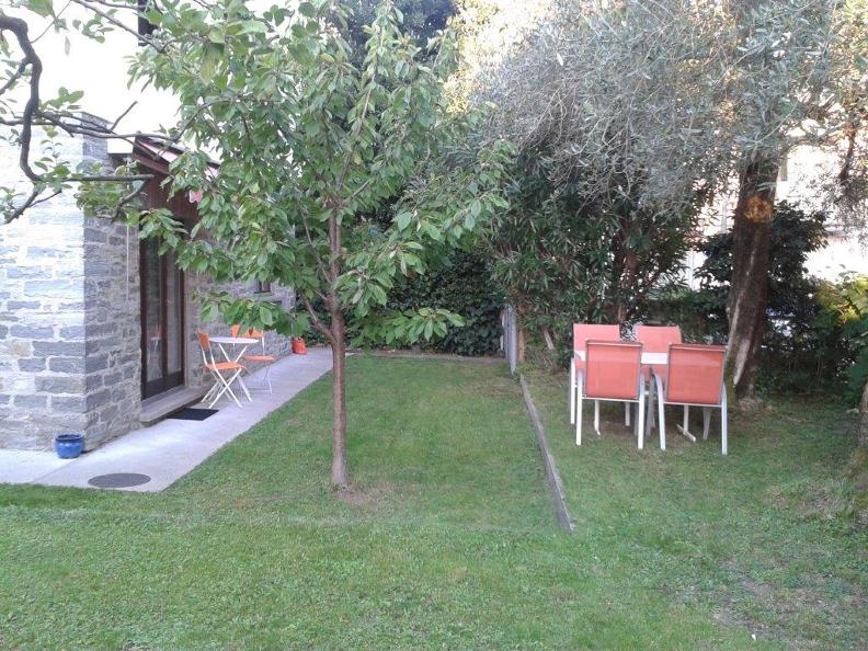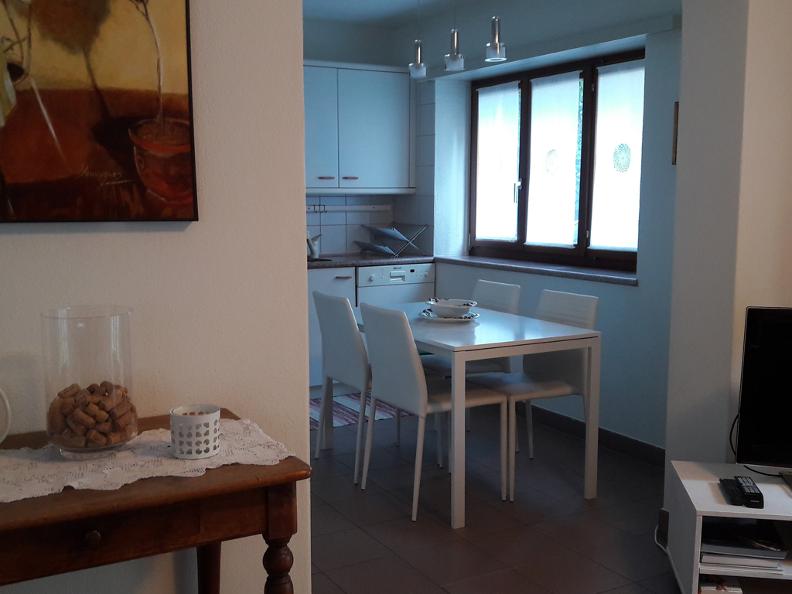 Appartamento di 2 locali (ca. 65 m2) con cucina aperta, forno, microonde, frigorifero con vano congelatore, macchina caffè, lavastoviglie; salotto con divano-letto; radio/TV ed allacciamento WLAN; ferro da stiro; camera a due letti con bagno annesso (vasca/doccia e lavatrice), seperato da una tenda; WC separato. Giardino a disposizione con tavolo, sedie e sdraio. Possibilità di grigliare. Appartamento non fumatori.
