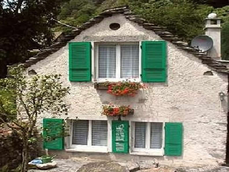 La casa si trova in alto ,vicino ai vigneti, con vista sul paese di Maggia. Giardino grande con tavolo in sasso.