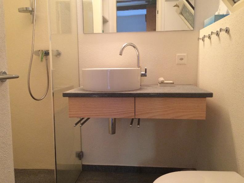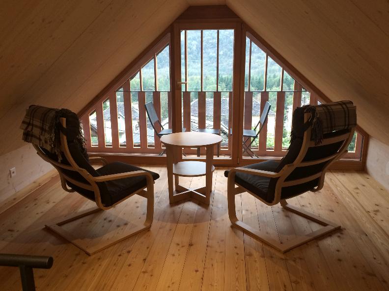 Accogliente rustico nella parte vecchia del paese. Piano inferiore: camino, cucina attrezzata, fornello con vetroceramica, forno, frigo, credenza, tavola, sedie, divano letto, radio/CD. Bagno: doccia, toilette, lavabo. Primo piano, accessibile par una scala esteriore: 3 letti, armadio, cassettone, tavola, sedie, toilette. Mansarda: 2 poltrone, piccolo tavolo, TV/Wi-Fi. Balconi su ogni piano. Cantina: lavatrice, carettino. Pergola: tavola e banchi in granito. piccola terrazza, capannone: sedie a sdraio, grill, legno per il camino. Rustico accessibile dalla fermata del bus a 7 min. dal parcheggio pubblico a 3 min. Ristorante con terrazza nelle vicinanze. A Maggia: supermercato, medico, farmacia, banca.