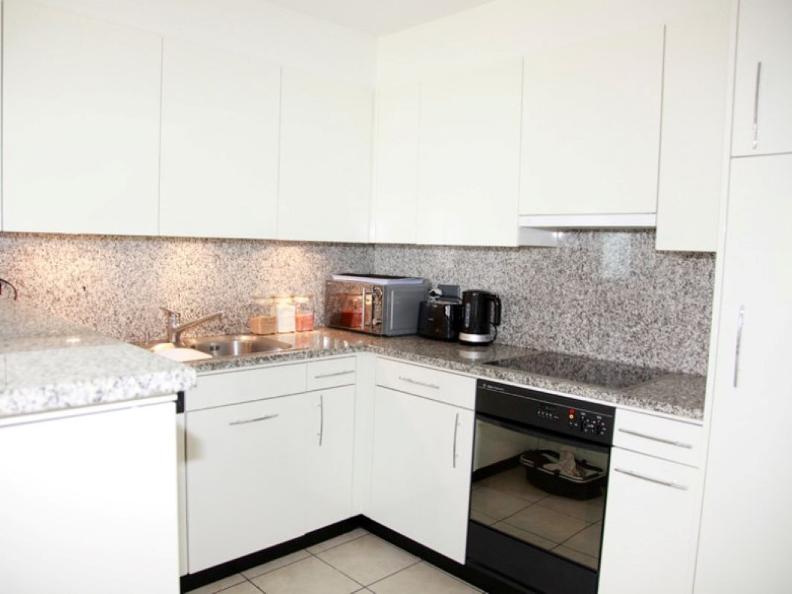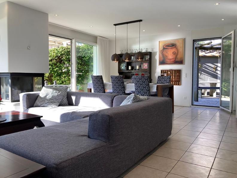 Moderna casa vacanze di 4.5 locali con 1 soggiorno-pranzo, 3 camere da letto, 2 bagni e 1 cucina aperta.