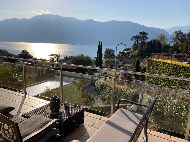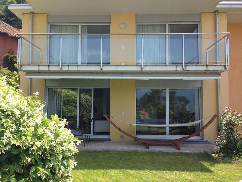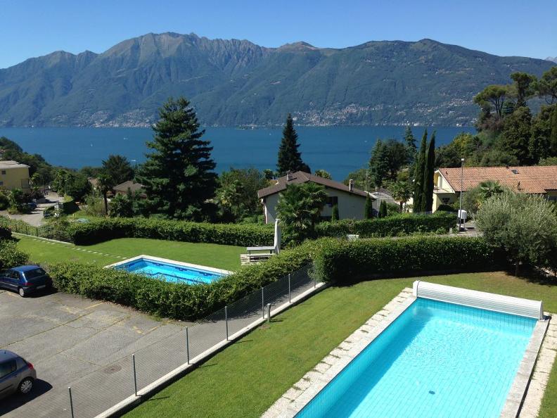 Giardino privato con terrazza coperta, cortile interno con tavolo in granito e griglia a carbone fissa, balcone esposto a sud con vista da sogno, piscina condivisa con 4 appartamenti