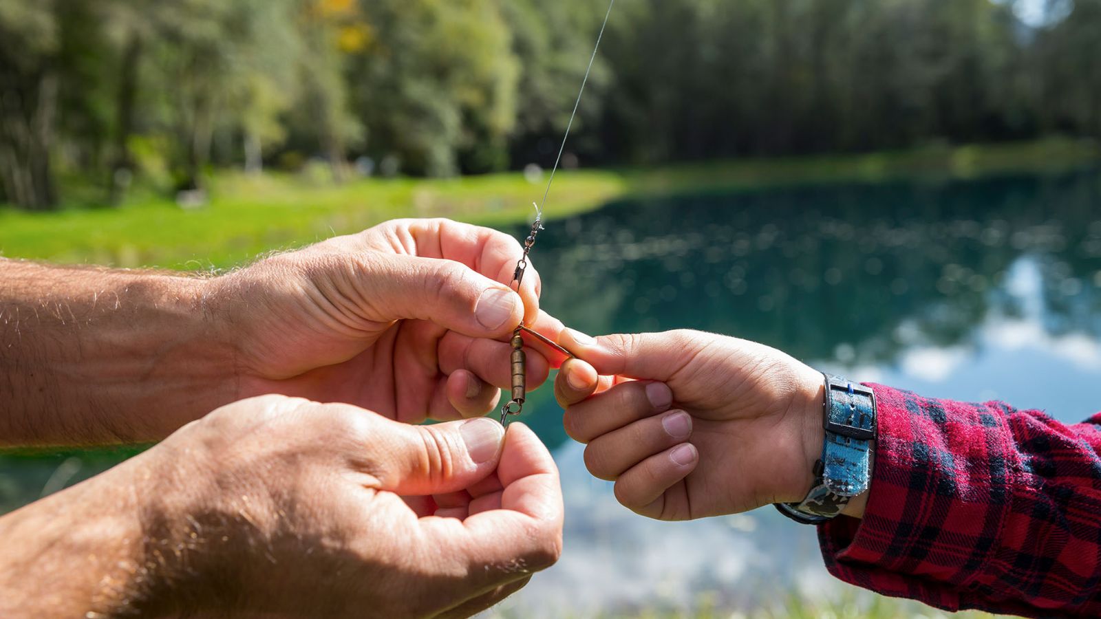 Retino, canna da pesca, stivali di gomma e cappello da pescatore: questo è tutto il necessario per vivere una giornata divertente in compagnia della tua famiglia.