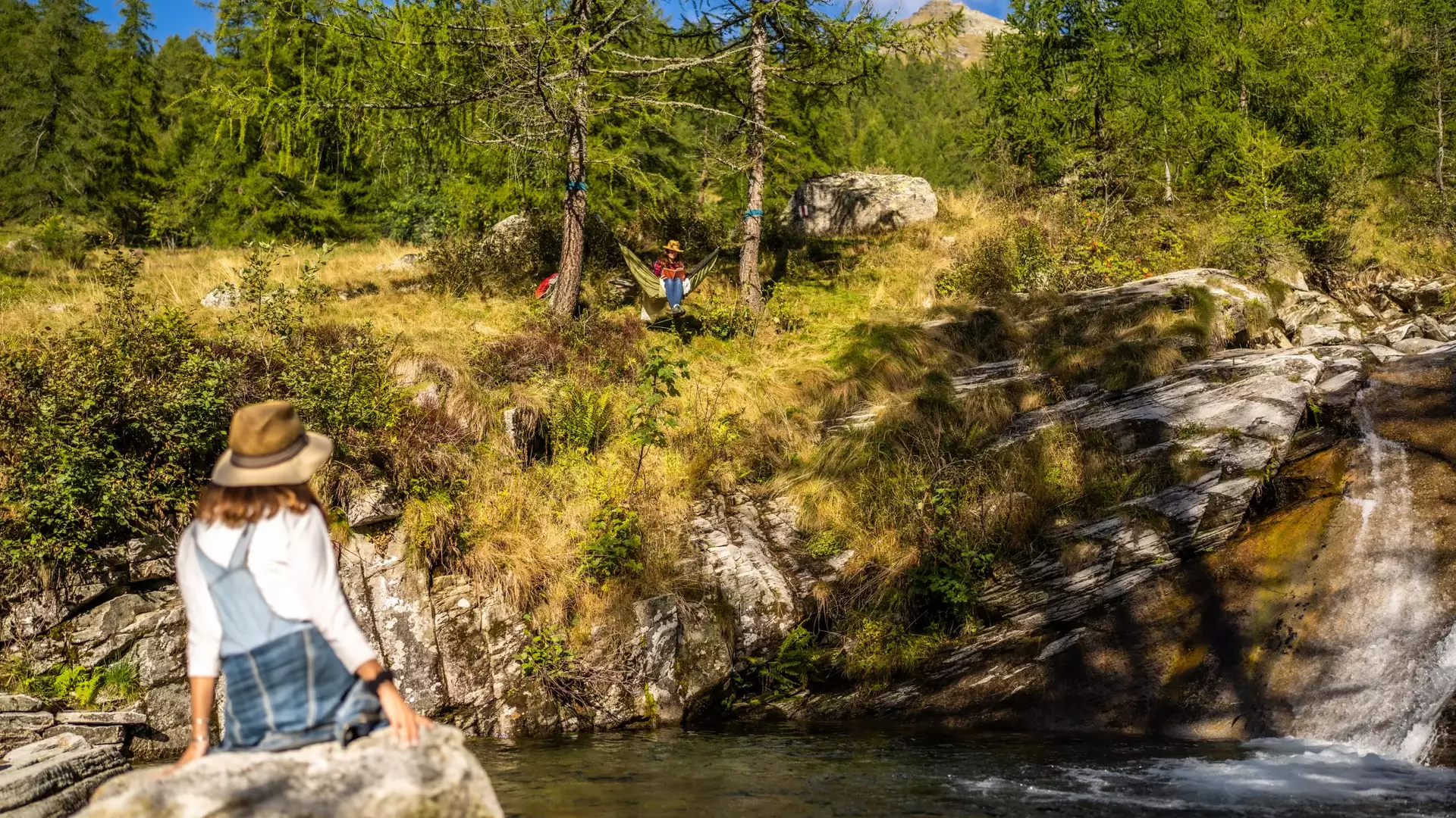 Noleggiare un’amaca per vivere sensazioni autentiche in un paesaggio unico come quello di Bosco Gurin. Il progetto Ggurijnar Hermi permette di riscoprire il turismo lento entrando in contatto con la comunità locale.