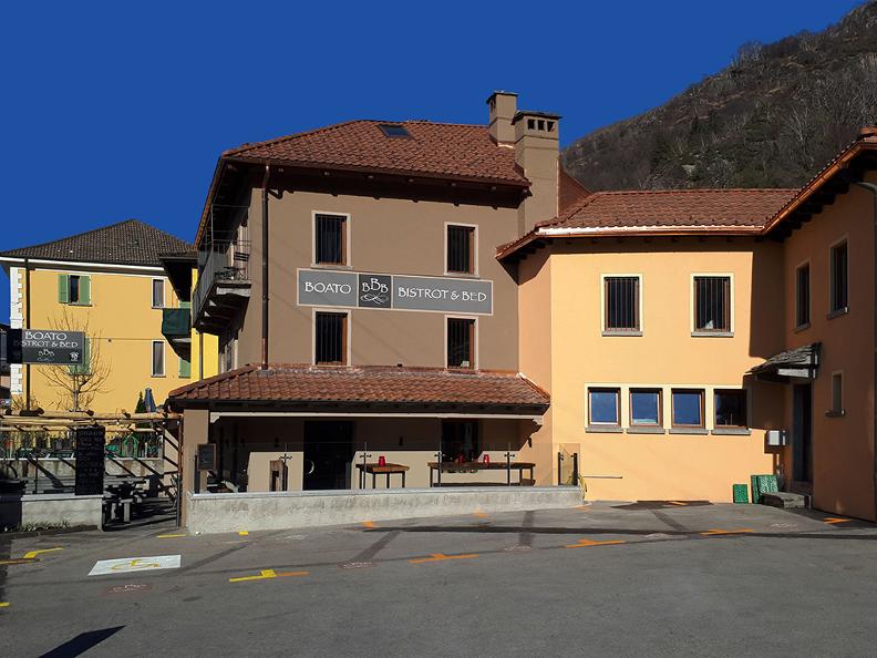 Ristorante con alloggio. Il ristorante Boato Bistrot dispone di 60 posti a sedere esterni in una bella terrazza soleggiata con pergolato e tavoli in granito. All’interno invece conta 30 posti a sedere in un ambiente piccolino ma accogliente con un bel caminetto.