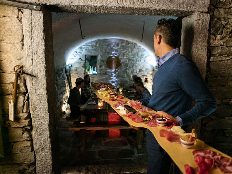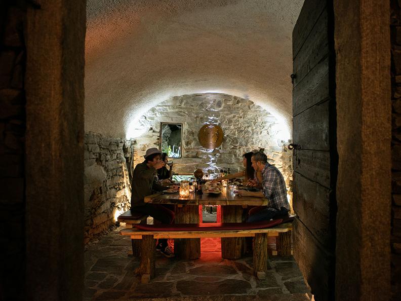 Il grotto dispone di una grande terrazza all’esterno con una splendida vista sul fiume Maggia ed un’accogliente saletta con camino, adatta per cene di ogni genere, riunioni, compleanni, matrimoni ed una cantina antica dove sono conservati e tenuti al fresco i vini, salumi nostrani e formaggi dell'Alpe.