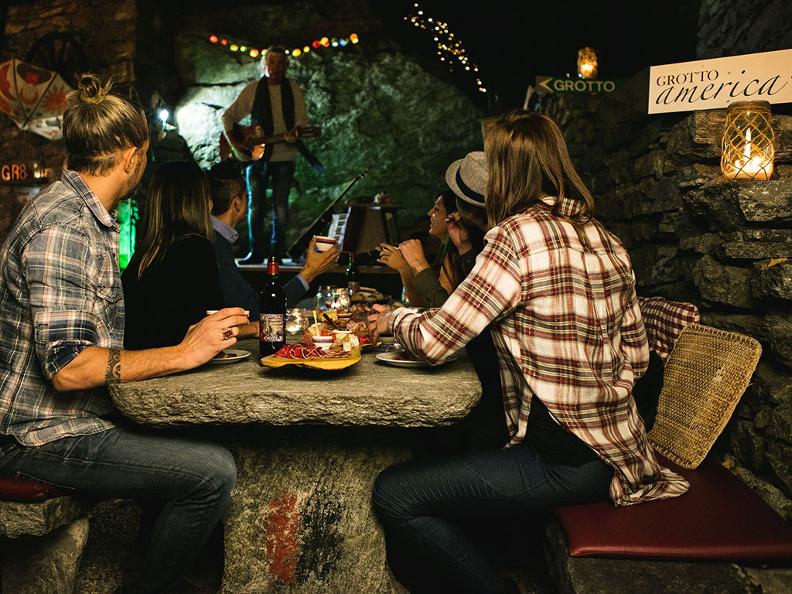 Oltre ad offrire piatti tradizionali e creativi con prodotti nostrani, il Grotto America offre un programma estivo "L'Angolo degli Artisti" che offre la possibilità agli artisti Ticinesi, Svizzeri e perfino Internazionali, ad esibirsi sul palco, offrendo anche spazio per esposizioni di vario tipo.