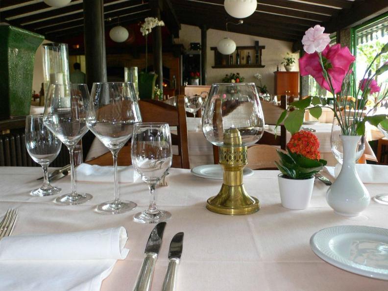 ai nel bel ristorante immerso nel verde a pochi passi da Ascona; sala banchetti fino a 60 persone e sala per riunioni o con ferenze fino a 30 persone. Molto accogliente la sala da pranzo curata in ogni dettaglio, così com e la terrazza e il grande giardino dove rilassarsi tra i