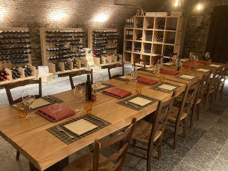 Nuova cantina “Giro di Vite” perfetta per aperitivi, degustazioni guidate e cene intime. Accanto una sala riunioni con camino, tecnologicamente all’avanguardia con un televisore da 85 pollici.